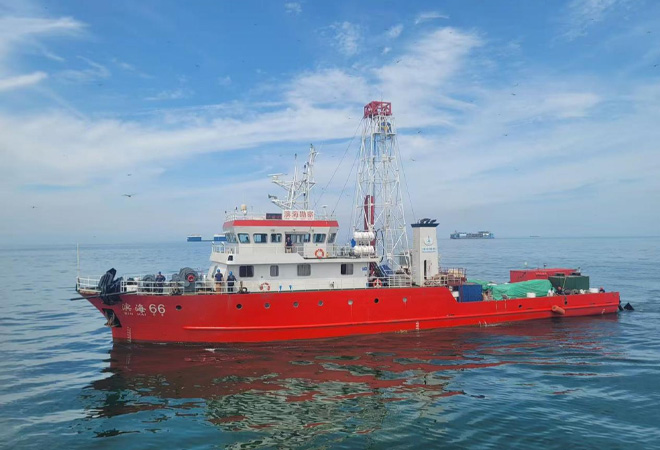 2025年8月中旬,滨海66船克服了复杂海流对船舶定位的影响,在上海长江口海域再传捷报,圆满完成12个(平均孔深100米)全取芯钻孔。