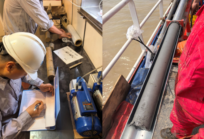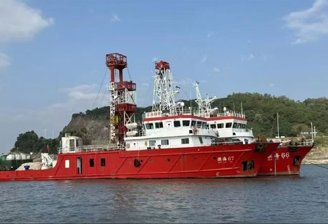 2025年8月中旬,滨海66船克服了复杂海流对船舶定位的影响,在上海长江口海域再传捷报,圆满完成12个(平均孔深100米)全取芯钻孔。